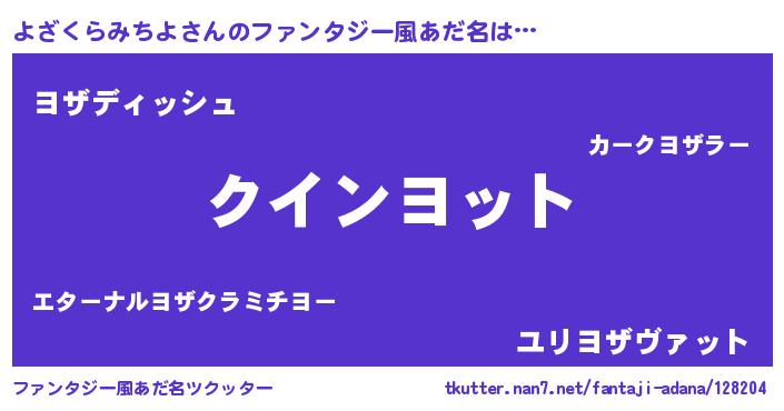 | 男性向けラノベタイトル風あだ名 | 『おまえをオタクにしてやるから、俺をよざくらみちよにしてくれ! 』 |
