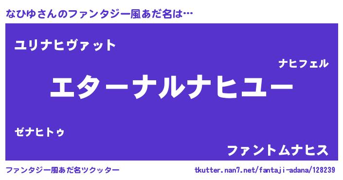 | ヒーロー風カッコイイあだ名 | 『ウルトラなひゆマン』『幻影騎士ナヒ』 |