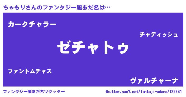 | 意味不明あだ名 | 『自称ちゃもり』『永久保存ちゃもり』 |