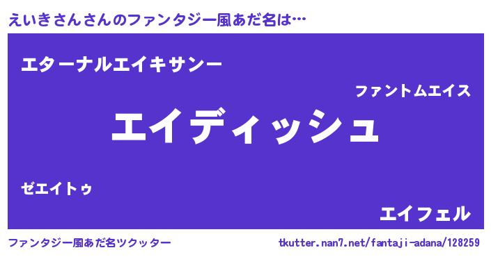 | 男性向けラノベタイトル風あだ名 | 『えいきさんという概念が存在しない退屈な世界 』 |
