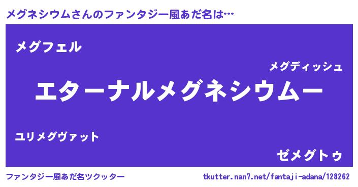 | 伝説のあだ名 | 『最強の陰陽師メグネシウム』 |