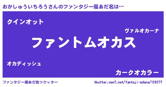 | 男性向けラノベタイトル風あだ名 | 『おかしゅういちろうに滅ぼされるだけの簡単なお仕事です』 |
