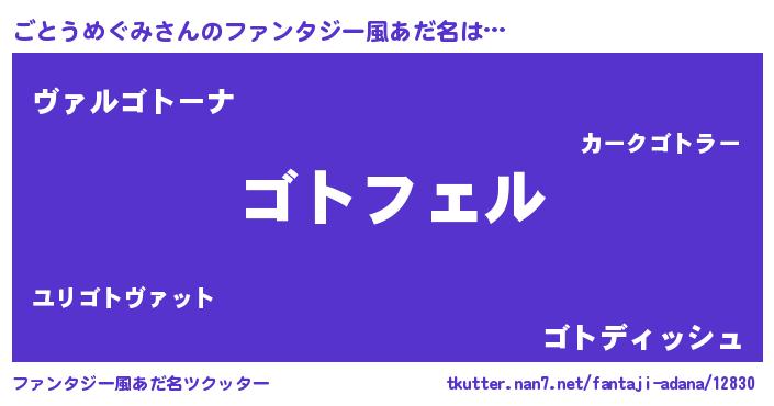 | 男性向けラノベタイトル風あだ名 | 『ゴトウメグミアートオンライン』 |
