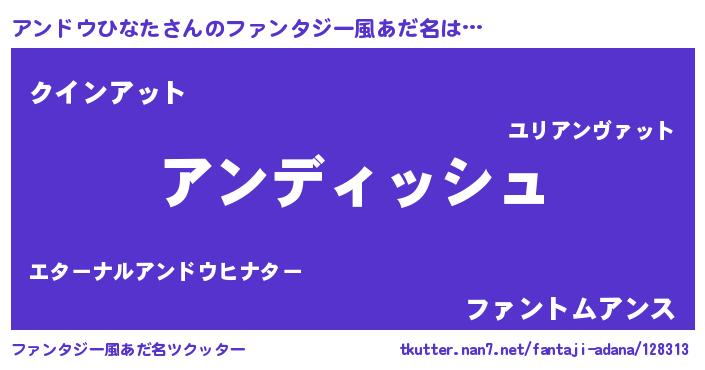 | ヘコむあだ名 | 『アンドウひなた(笑)』『アンっ子』 |