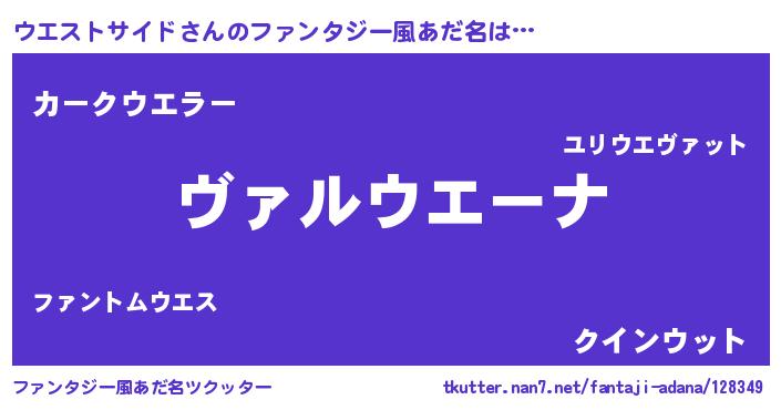 | 女子向けラノベタイトル風あだ名 | 『ウエストサイドが死なない童話 林檎のウエストサイドの診療簿』 |