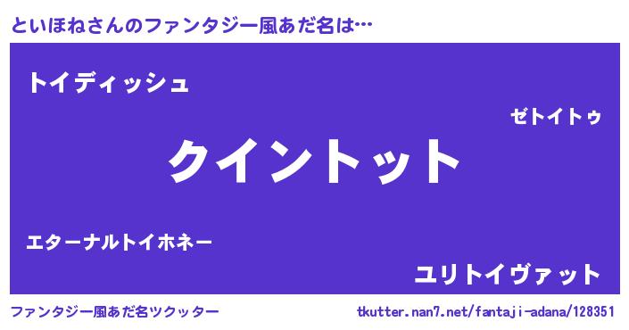 | ヘコむあだ名 | 『といほね(笑)』『牛乳』『といを』 |