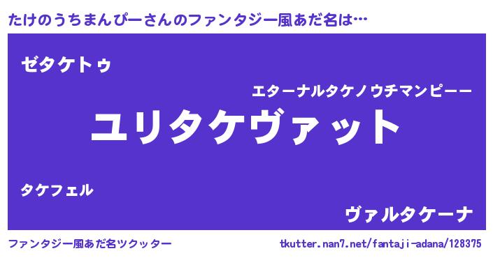 | 女子向けラノベタイトル風あだ名 | 『たけのうちまんぴーの玉の輿計画!』 |