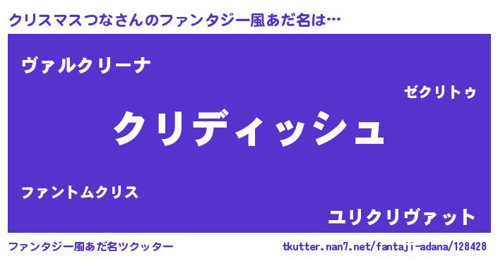 | 男性向けラノベタイトル風あだ名 | 『クリスマスつなという概念が存在しない退屈な世界 』 |