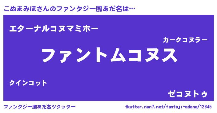 | 女子向けラノベタイトル風あだ名 | 『こぬまみほ様がみてる』 |