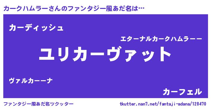 | 男性向けラノベタイトル風あだ名 | 『転生したらカークハムラーだった件』 |