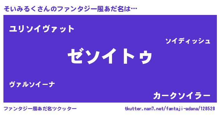| 男性向けラノベタイトル風あだ名 | 『Re:そいみるくから始める異世界生活』 |