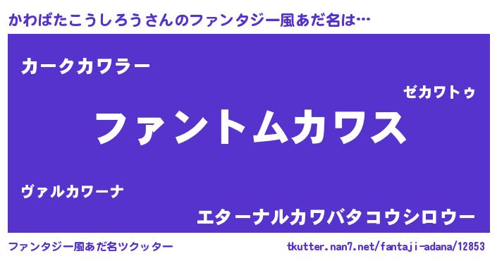 | 女子向けラノベタイトル風あだ名 | 『かわばたこうしろうは平凡を望む』 |