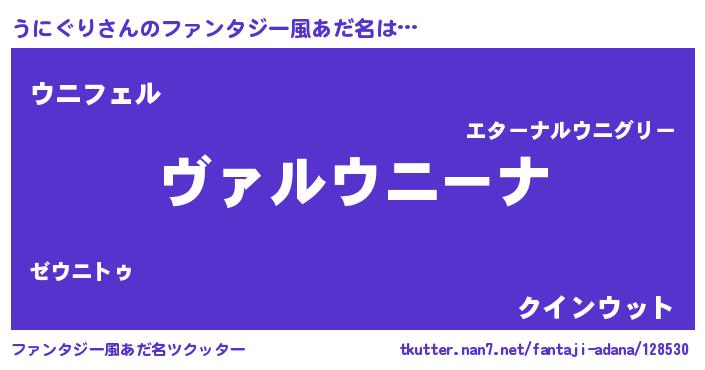 | 意味不明あだ名 | 『住所不定無職うにぐり(4歳)』 |