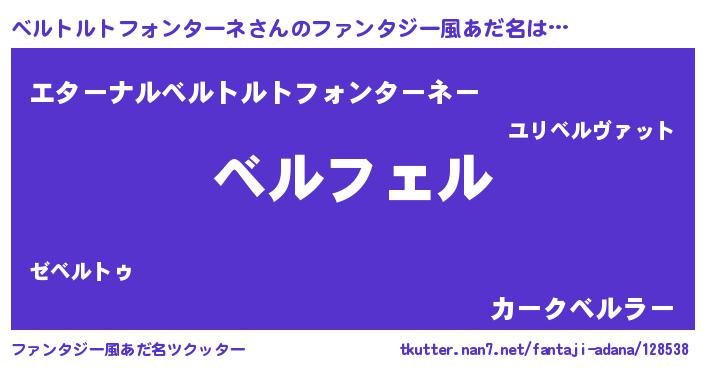 | 男性向けラノベタイトル風あだ名 | 『ベルトルトフォンターネアートオンライン』 |