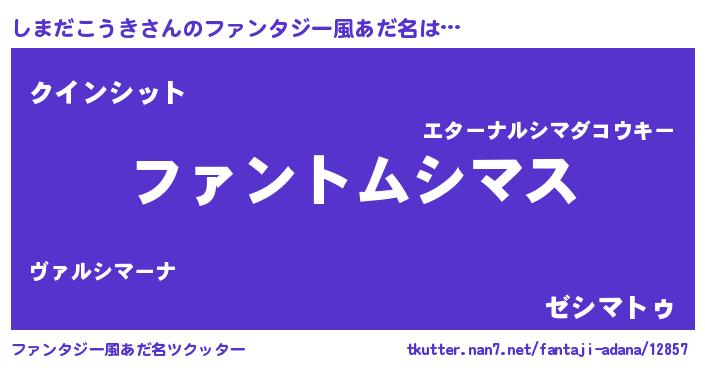 | 男性向けラノベタイトル風あだ名 | 『しまだこうきの嫁は女の子じゃないと思った?』 |