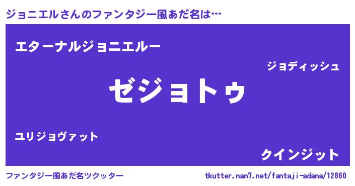 | 意味不明あだ名 | 『自称ジョニエル』『永久保存ジョニエル』 |