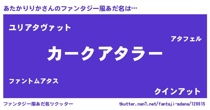 | ヒーロー風カッコイイあだ名 | 『天空の使者あたかりりか』 |