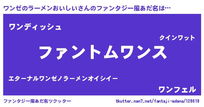 | 意味不明あだ名 | 『とにかく怪しいワンゼのラーメンおいしい』 |