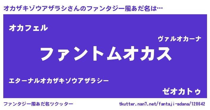 | 男性向けラノベタイトル風あだ名 | 『オカザキゾウアザラシの嫁は女の子じゃないと思った?』 |