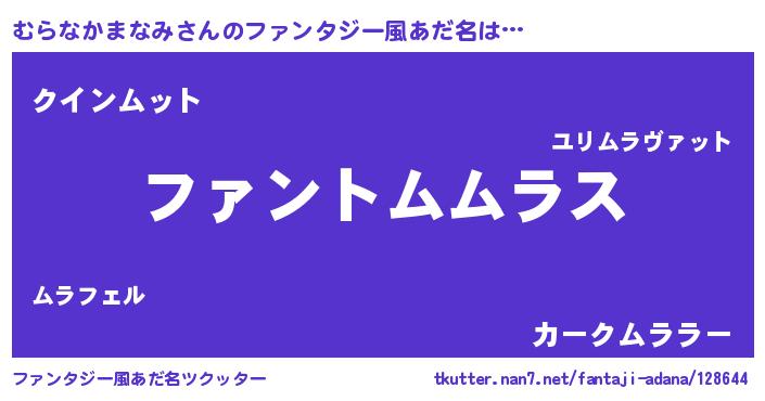 | ポケモン風あだ名 | 『ヒムラナカマナミ』『ムラゴンZ』 |
