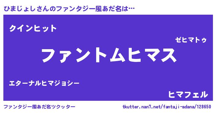 | ヒーロー風カッコイイあだ名 | 『銀牙騎士ヒマ』『天空の使者ひまじょし』 |