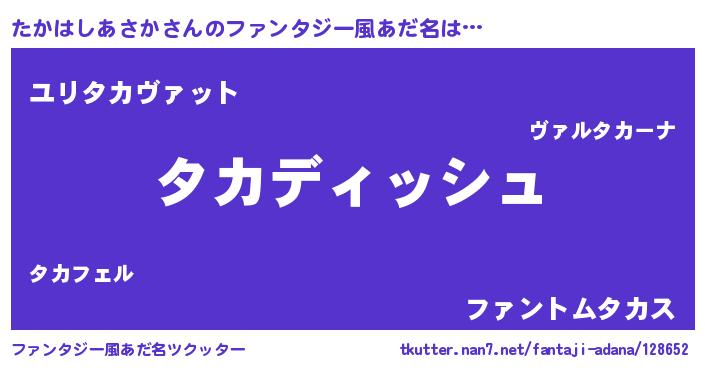 | 伝説のあだ名 | 『古文書に記された暗殺者たかはしあさか』 |