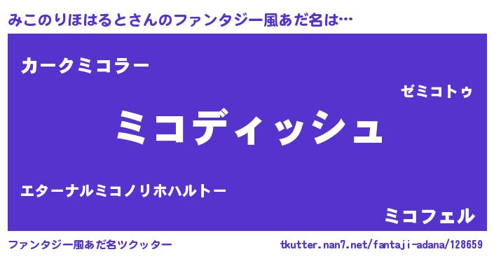| 胡散臭い通販商品みたいなあだ名 | 『絶対に幸福をもたらす水素水…その名も「みこのりほはると」』 |