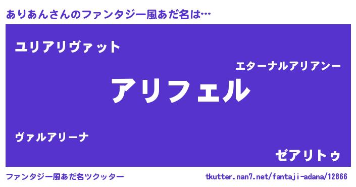 | 意味不明あだ名 | 『ペロリンありあん』『自称ありあん』 |