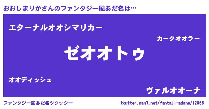 | 男性向けラノベタイトル風あだ名 | 『Re:おおしまりかから始める異世界生活』 |