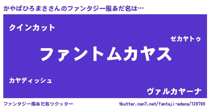 | 男性向けラノベタイトル風あだ名 | 『ダンジョンにかやばひろまさを求めるのは間違っているだろうか』 |