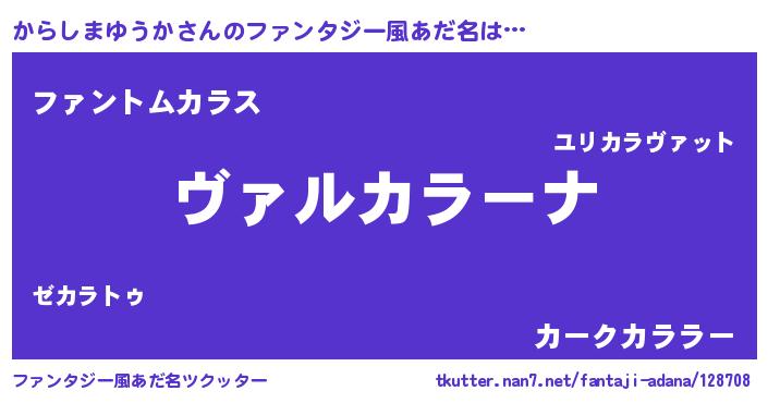 | 男性向けラノベタイトル風あだ名 | 『この素晴らしい世界にからしまゆうかを!』 |