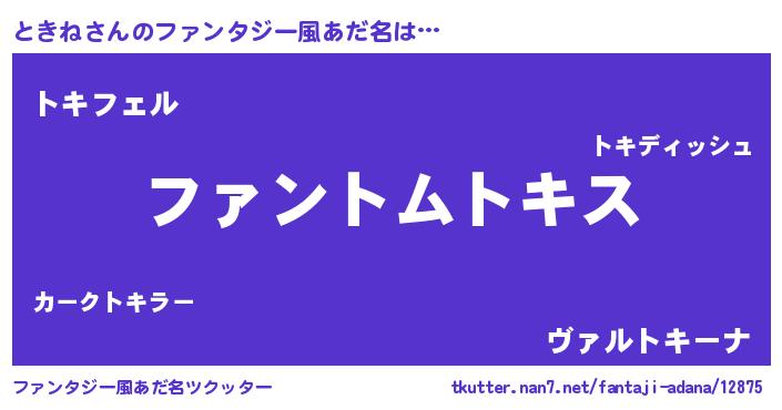 | ポケモン風あだ名 | 『トキゴンZ』『ヒトキネ』『トーキイ』 |