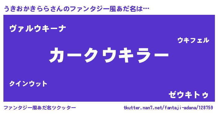 | 意味不明あだ名 | 『住所不定無職うきおかきらら(74歳)』 |