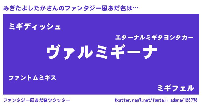 | 男性向けラノベタイトル風あだ名 | 『この素晴らしい世界にみぎたよしたかを!』 |