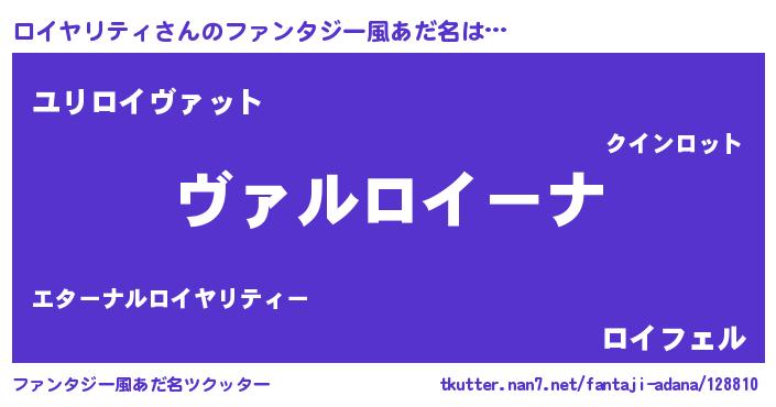 | 男性向けラノベタイトル風あだ名 | 『魔弾の王とロイヤリティ』 |
