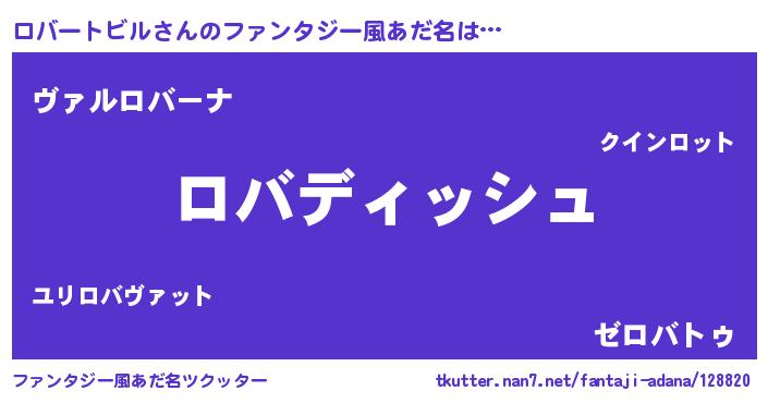| 男性向けラノベタイトル風あだ名 | 『ロバートビルという概念が存在しない退屈な世界 』 |
