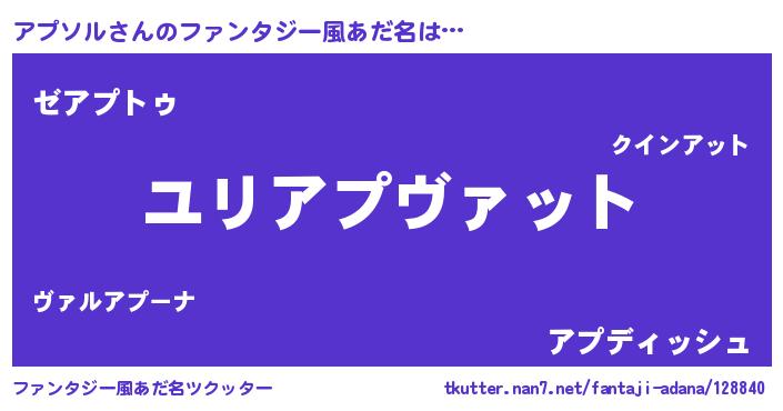 | ポケモン風あだ名 | 『アプキング』『アプセウス』 |