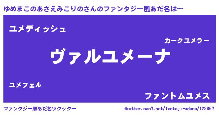 | 男性向けラノベタイトル風あだ名 | 『この素晴らしい世界にゆめまこのあさえみこりのを!』 |