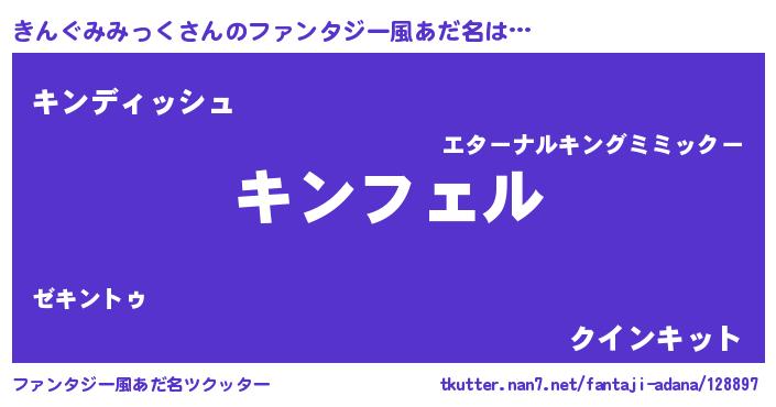 | ヘコむあだ名 | 『きんふぇ~』『きんぐみみっく(笑)』 |