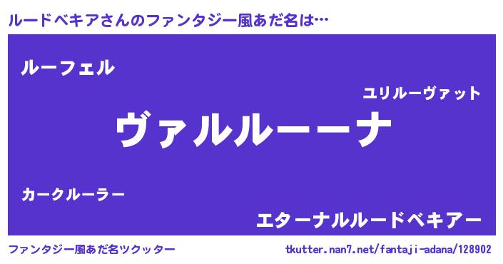 | 男性向けラノベタイトル風あだ名 | 『魔弾の王とルードべキア』 |