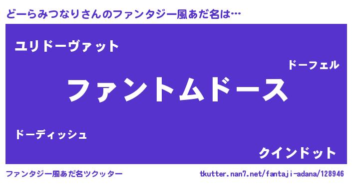 | 意味不明あだ名 | 『とにかく怪しいどーらみつなり』 |