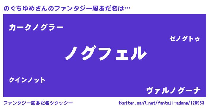 | 男性向けラノベタイトル風あだ名 | 『のぐちゆめの憂鬱』 |
