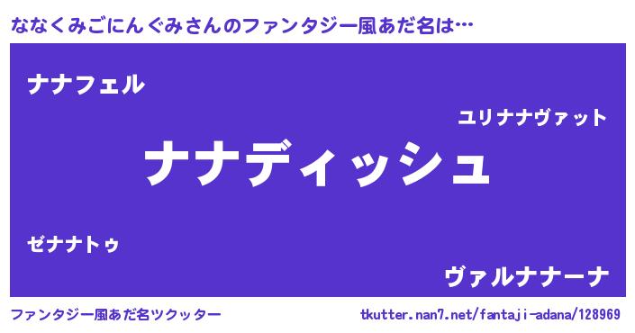| 意味不明あだ名 | 『永久保存ななくみごにんぐみ』 |