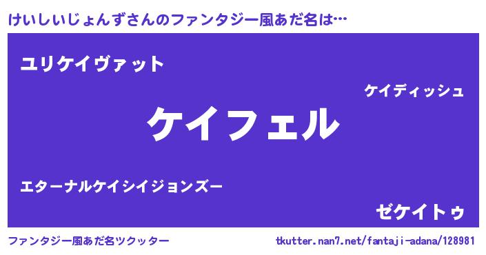 | ヘコむあだ名 | 『けいふぇ~』『けいしいじょんず(小並感)』 |