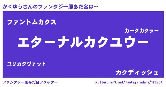 | ヒーロー風カッコイイあだ名 | 『ウルトラかくゆうマン』『暗黒騎士カク』 |