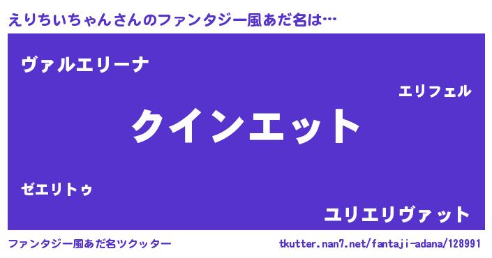 | 女子向けラノベタイトル風あだ名 | 『えりちいちゃん夫妻のなれそめ』 |