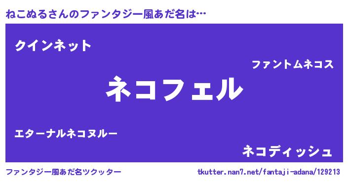 | ヘコむあだ名 | 『ねこふぇ~』『ねこぬる(笑)』 |