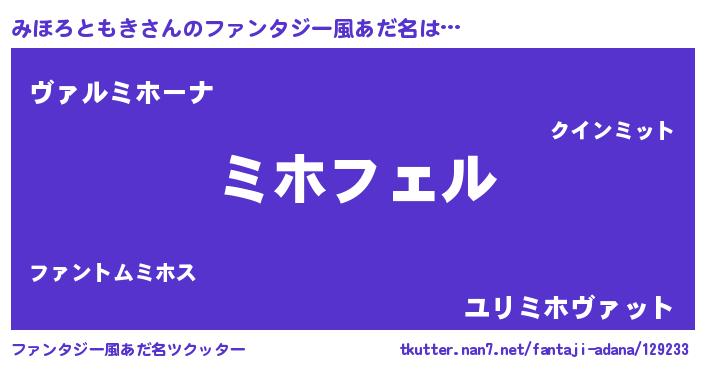 みほろともきさんのファンタジー風あだ名をツクッター!