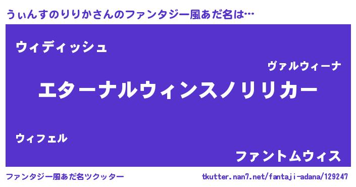| 欧米人風あだ名 | 『うぃんすのりりかクリステル』 |