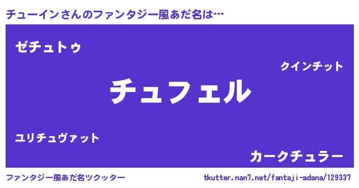 | ヒーロー風カッコイイあだ名 | 『スーパーチューイン』『魔戒騎士チュ』 |
